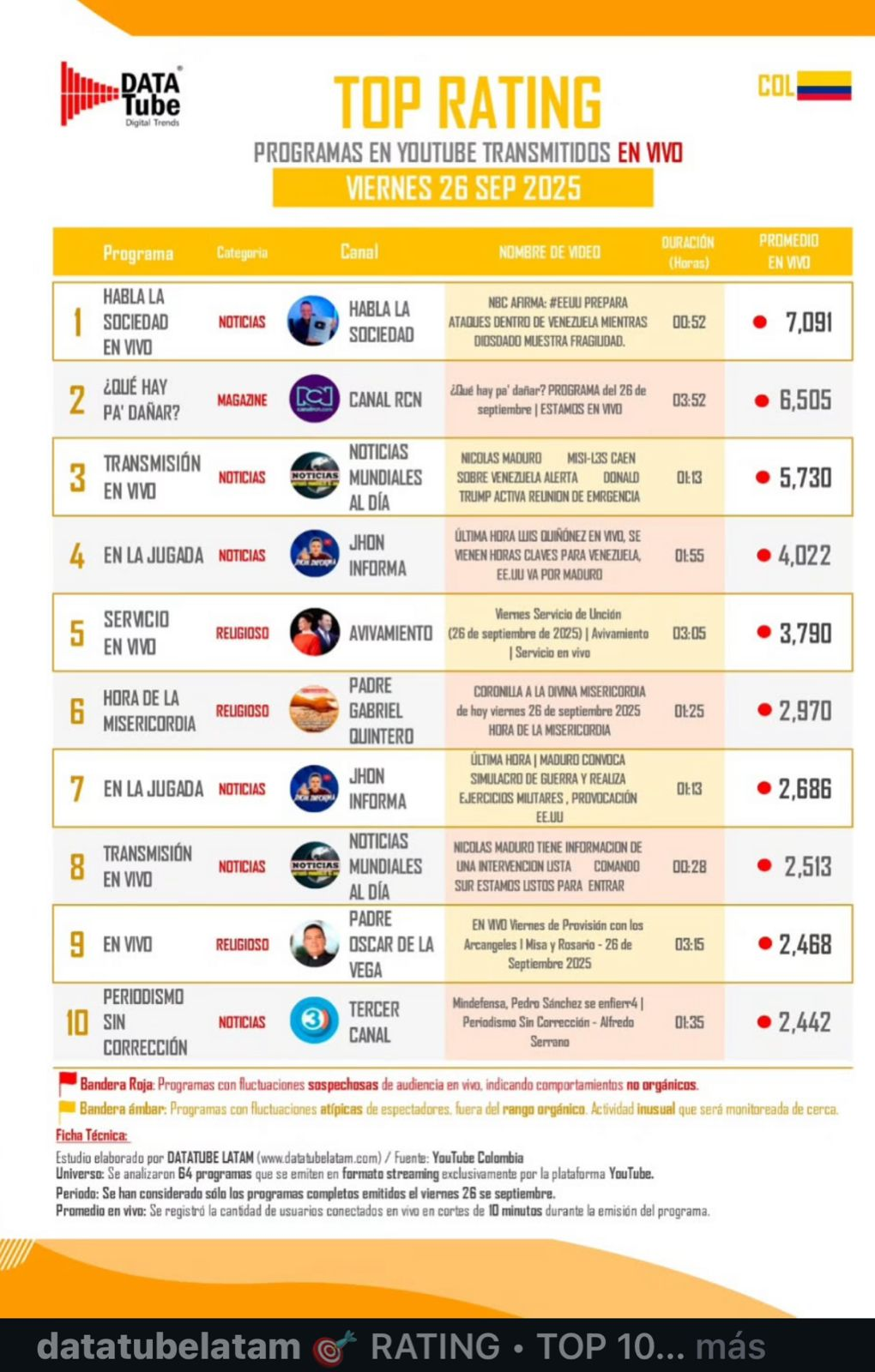 El pasado viernes 26 de septiembre, el portal DataTube destacó que el servicio de Avivamiento estuvo dentro del top 5 de los canales más vistos en transmisión en vivo, con casi 4 mil conexiones simultáneas durante la reunión de viernes.