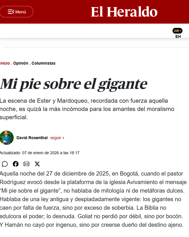 Ese mismo análisis fue publicado también en El País (Colombia), ampliando la conversación al contexto actual. Allí se plantea que muchos gigantes no caen por falta de poder, sino por exceso de orgullo, mentira o falta de fundamento. Una lectura que invita a mirar más allá de lo evidente y a entender que la fe no es pasiva, sino activa.